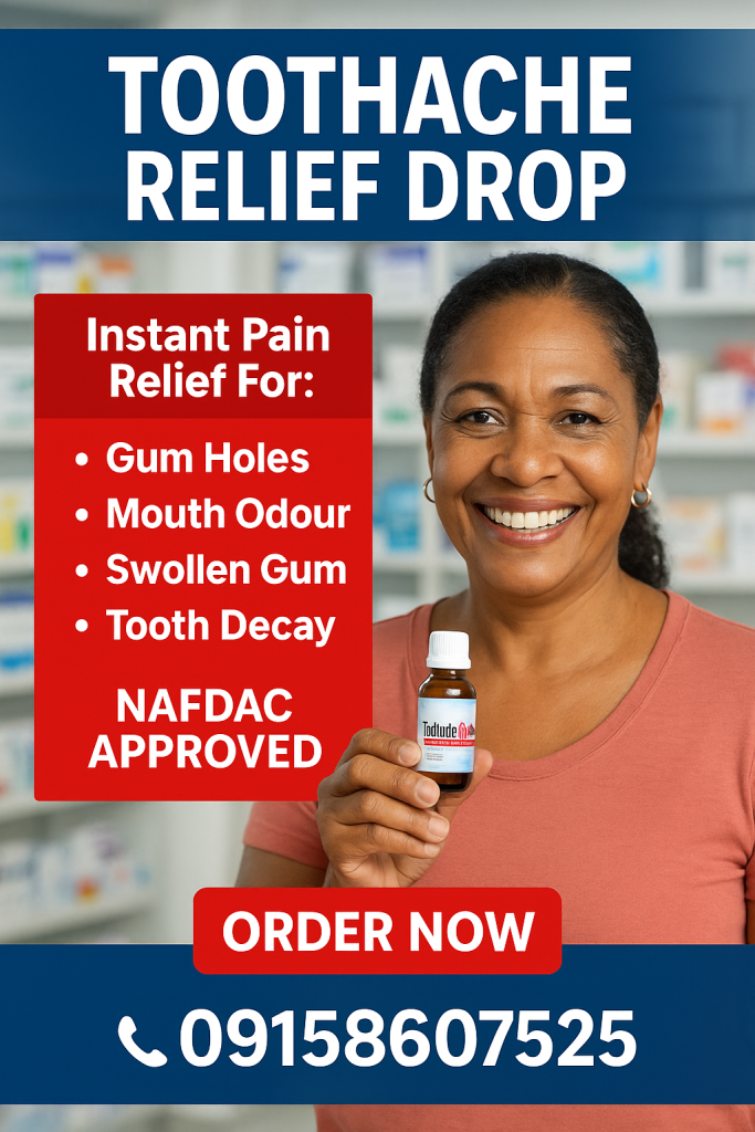 Toothache Go – the fast-acting herbal solution trusted by thousands of Nigerians to permanently relieve tooth problems without going to the dentist or spending a fortune on painful treatments.